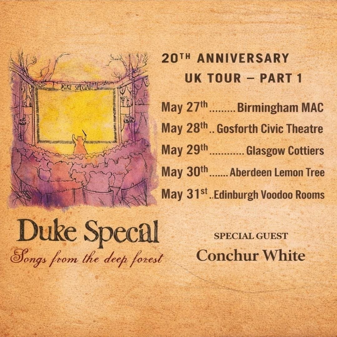 Conchúr White will be playing live in Birmingham, Newcastle, Glasgow, Aberdeen & Edinburgh alongside Duke Special in May. TICKETS available HERE.